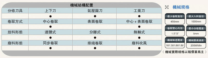 卷取動力部分:兩個卷取馬達配合主機馬達做三馬達連動控制,主機馬達隔斷放料及收卷馬達控制張力,成品張力穩(wěn)定,外觀美觀。
