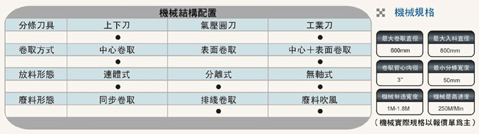 成品卷取方式:可配備板條式氣壓軸及滑差式卷取軸,適用更多材料的范圍,換軸方式經(jīng)特殊設(shè)計,可以隨時更換。
